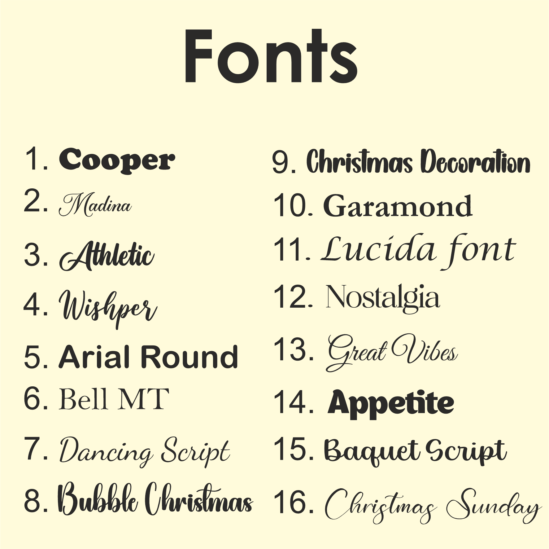 If the font won't be stated we will use font Bell MT.